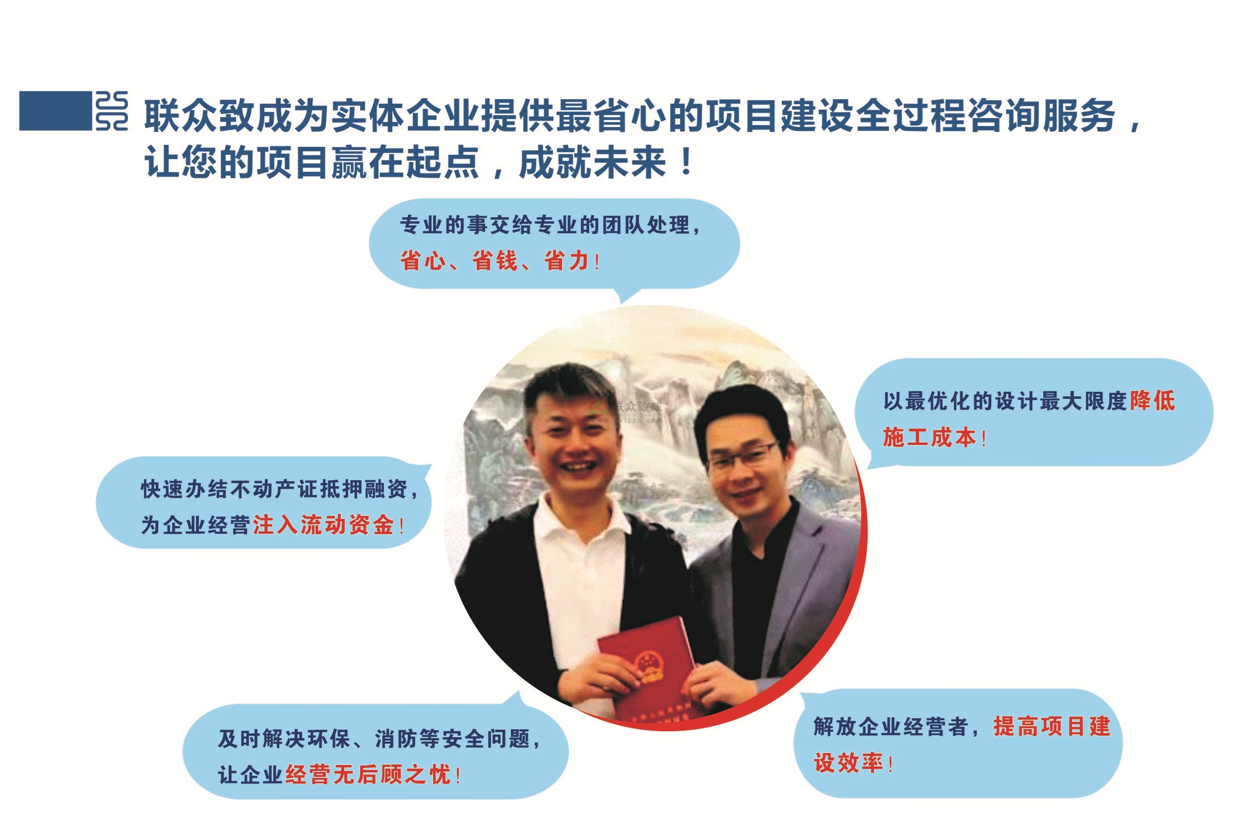廣西聯眾致成投資咨詢有限公司成立于2014年1月,是一家專注于項目建設全過程咨詢管理的綜合性專業代理服務機構,旗下擁有4家子公司。總公司位于中國(廣西)自由貿易區CBD核心區凱旋路16號,并在國家級廣西一東盟經濟技術開發區武華大道39號青年工業園綜合樓3樓設立分公司(輻射里建東盟經開區、武鳴城區)。公司創立至今,為項目建設全過程提供“一站式”服務,通過整合資源...了解更多 >>